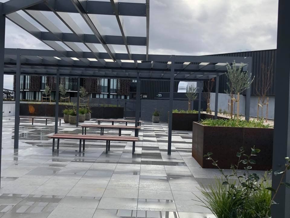 Corten Steel Planter Boxes, Outdoor Seating and Pergolas North Shore Units Kingston